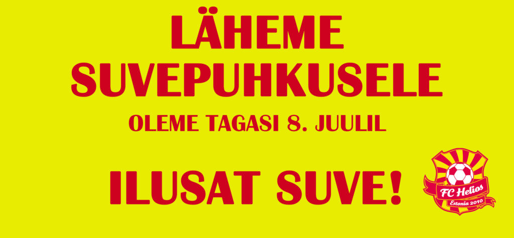 Eesti Jalgpalliliigad lähevad suvepuhkusele ning see on ka sobiv aeg FC Heliose klubil korraks aeg maha võtta, et puhata ning suvemõnusid nautida. Tuleme tagasi 8. juulil ning siis saame värskete mõtete ja puhanud peaga tööd jätkata! Seniks kõigile toredat ja päik...