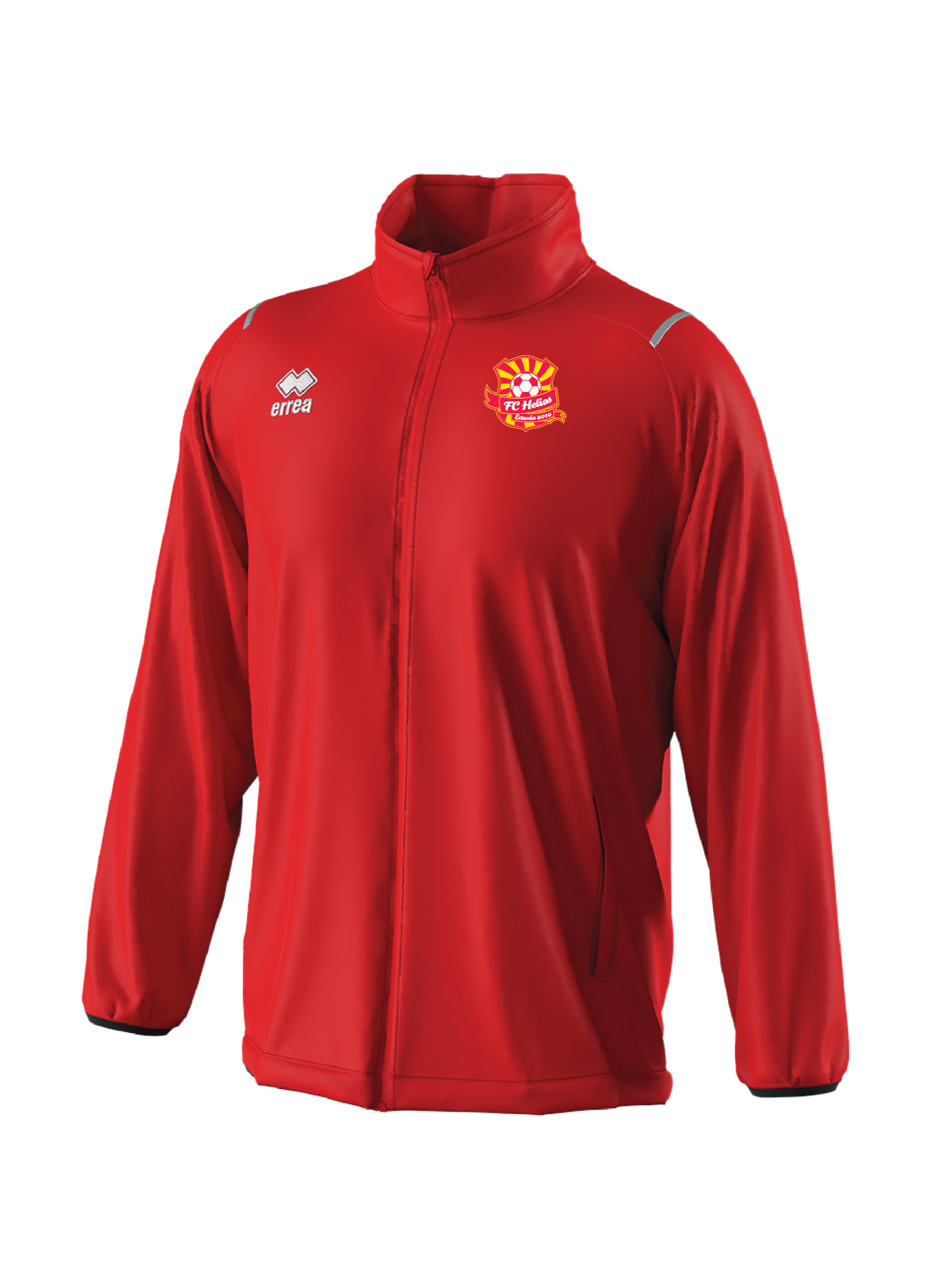 Errea kilejope kapuutsi ja lukuga taskutega. Seljal FC HELIOS.
