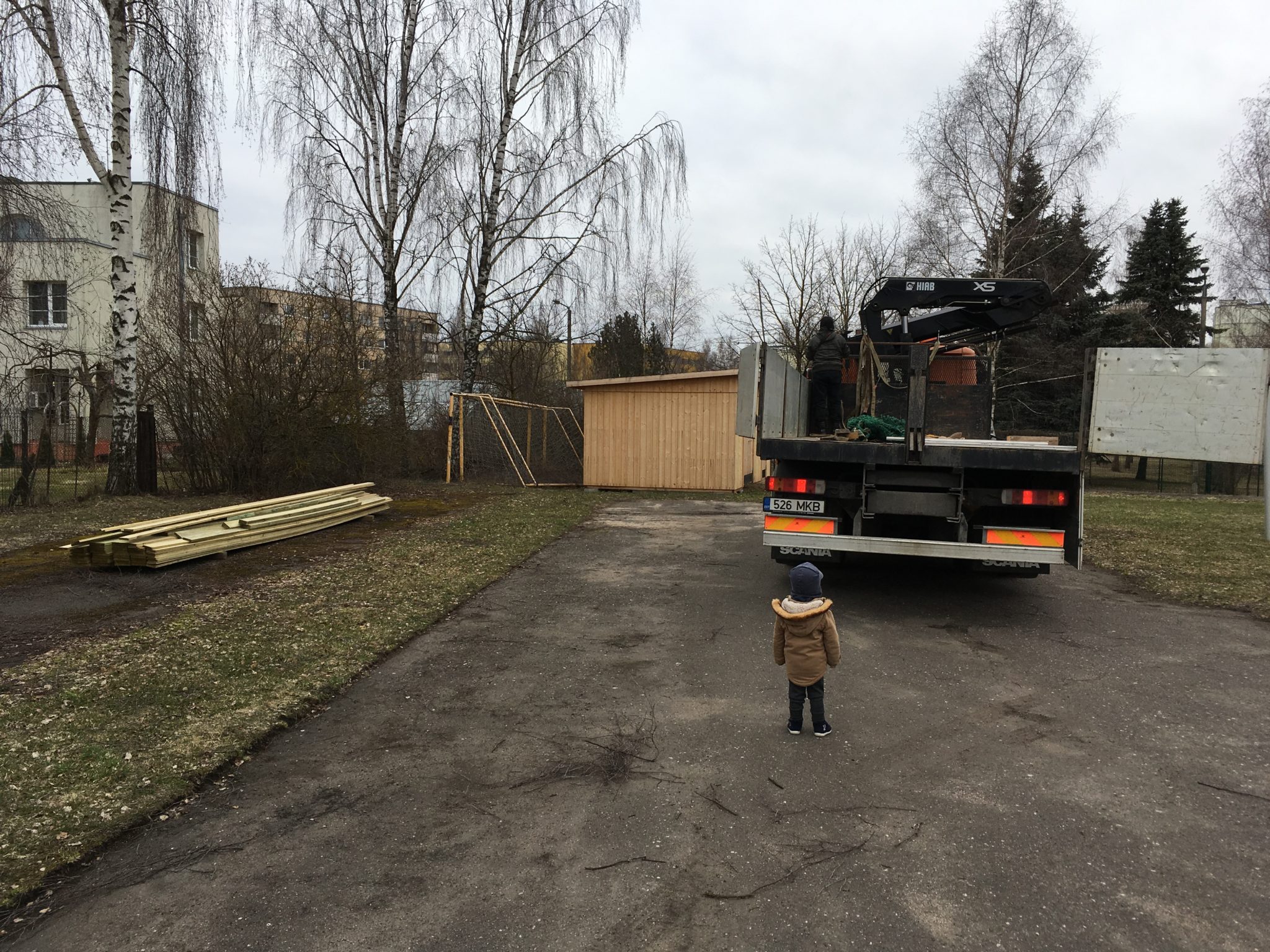 Suured tänud Andres Nurk ja EVIKO, tänu kellele saime laudmaterjali ja vajalikke vahendeid, et kõik tööd kenasti tehtud saaksime. Täna hommikul korraldasid nad ka laudade transpordi Veeriku Kooli staadionile – see oli suureks abiks! Lisaks saime transportida ühe suure värava M. Reiniku Kooli staadionile!