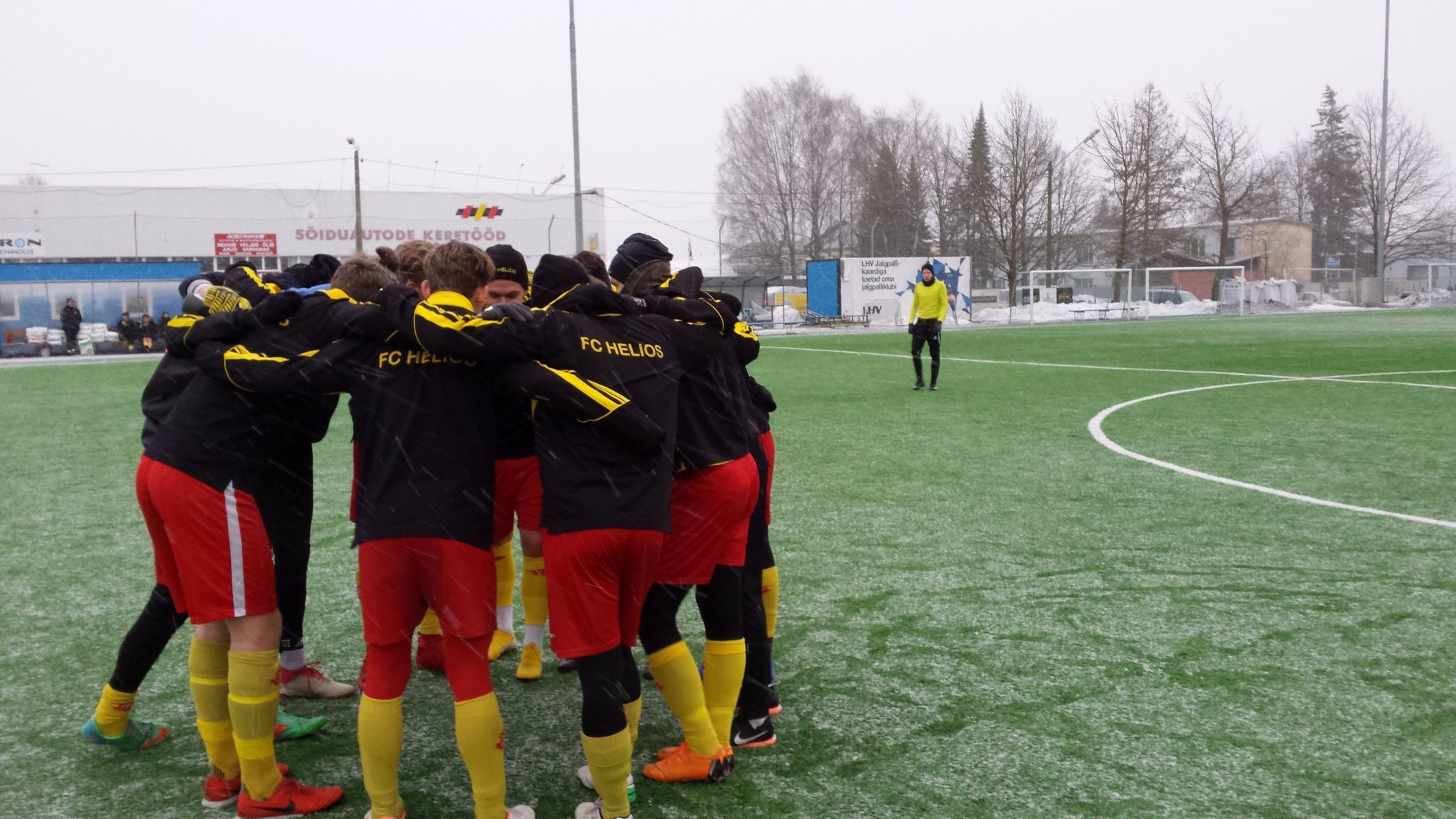Pühapäeval toimus treeningmäng ka Tartu FC Helios esindusmeeskonnal, kui mindi vastamisi EMÜ meeskonnaga. Hooaja eelsel mängul pidime leppima 4:5 kaotusega. Peatreener Simone Uggeri kommeteerib kohtumist järmiselt: „Olen mängijatega rahul – meil oli ees raske treeningnädal, kuid mehed pidasid tublisti vastu. Treeningmängus tulemus polnud oluline, sest pöörasin rohkem tähelepanu trennis harjutatud asajdele. Mängus oli häid elemente, kuid ka neid mida peame algaval nädalal parandama hakkama. Hooaja avamänguni on veel jäänud kuu aega, et olla valmis esimeseks lahinguks!“