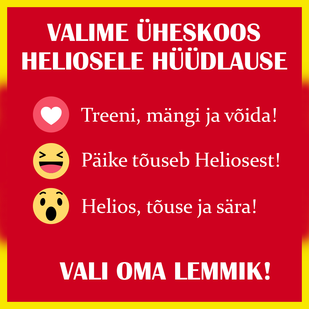 Kes olid 16. juunil klubi perepäeval, siis teavad, et FC Heliose klubi otsib oma hüüdlauset ehk sloganit. Kõik perepäeval osalenud said meile jätta oma mõtteid ja ideid. Täname kõiki, kes ajusid ragistas ning omapoolseid mõtteid paberile jäädvustas. Tänaseks oleme välja valinud kolm meie jaoks parimat hüüdlauset. Nüüd vajame Teie kõigi abi – 1) Minge Heliose Facebooki lehele, 2) leia hüüdlause valimise postitus, 3) valige LIKE nupu alt sobiv emotikon. Kõige rohkem hääli saanud lausest saabki FC Heliose jalgpalliklubi hüüdlause! Hääletamine lõpeb pühapäeva (14.07) hilisõhtul kell 23:55. Vali oma lemmik nüüd!